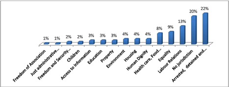 As per graph above, the KZN Provincial Office found that 12% of complaints received did not fall within the jurisdiction of the Commission.