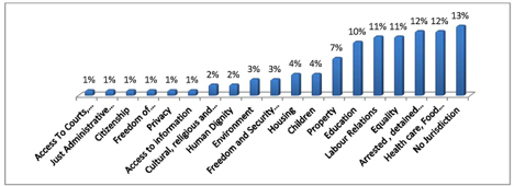 As per graph above, the LP Provincial Office found that 13% of complaints received did not fall within the jurisdiction of the Commission.